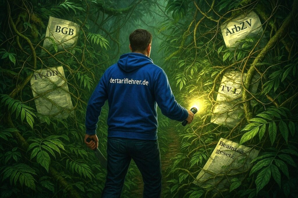 Deutschland mit seinem föderalen System von 16 Bundesländern, die alle eigene Regeln an ihren Schulen haben, und die Vielzahl an Schulen in kirchlicher oder privater Trägerschaft machen es einem aber auch nicht gerade einfach. Neben den unterschiedlichen Schulen gibt es auch noch verschiedene Statusgruppen – verbeamtet oder tarifbeschäftigt. Wo liegt da der Unterschied? Seit über 20 Jahren bin ich selbst tarifbeschäftigter Lehrer an einer staatlichen Schule in Bayern und immer wieder bin ich überrascht von den Details, die für mich als Lehrkraft von Bedeutung sind. Ausgerüstet mit Taschenlampe, um den Lichtkegel auf besondere Einzelheiten zu richten, und der Machete, um zu entfernen, was den Blick versperrt, versuche ich, für euch mehr Durchblick zu schaffen. Ein großer Vorsatz und der richtige Weg durch den Dschungel scheint schier chancenlos, aber irgendwo muss man ja mal anfangen… (Nov/2025)