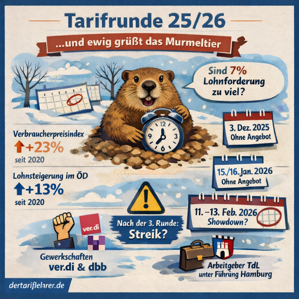 Es scheint zu einer seltsamen Tradition der TdL geworden zu sein, erstmal der Arbeitnehmerseite gar kein Angebot vorzulegen und alles auf die dritte Verhandlungsrunde zu setzen. Man kann nun spekulieren, ob die TdL dadurch ihr generelles Missfallen an einer gemeinsamen Lösung ausdrücken möchte, ein asymmetrisches Machtverhältnis darstellen möchte oder ob es einer Dramaturgie dienen soll. Vielleicht hat man auch etwas zuviel „Die Kunst des Krieges“ gelesen.
