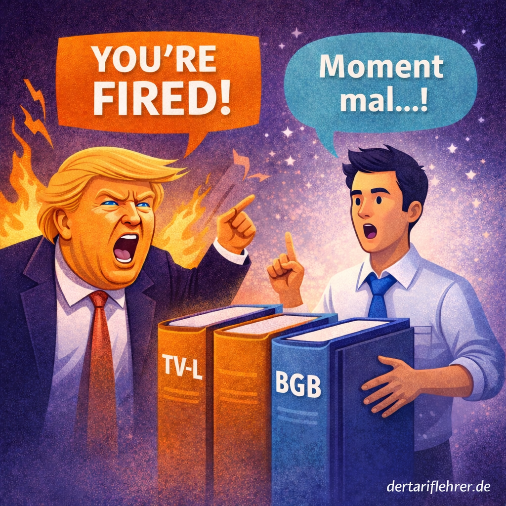 Zum Glück ist es in Deutschland nicht ganz so wie bei The Apprentice im US-Fernsehen, wo der narzisstische Boss aufschreit: „You’re fired“, und man danach seine sieben Sachen enttäuscht in einen Karton packt und stante pede den Arbeitsplatz verlässt. Es ist etwas komplizierter – und daher schon mal die Vorwarnung eines heute etwas längeren Eintrags.