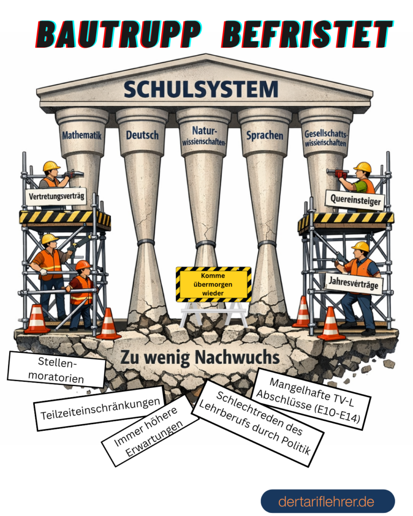 Der Lehrermangel zeigt sich in Deutschland an den Schularten in unterschiedlicher Brisanz aber eine wichtige Stütze des Systems sind dabei immer auch Kolleginnen und Kollegen, die befristet eingestellt werden. Sie stopfen Lücken, helfen aus, heilen Fehlplanung und sind unverzichtbar im Gesamtsystem.